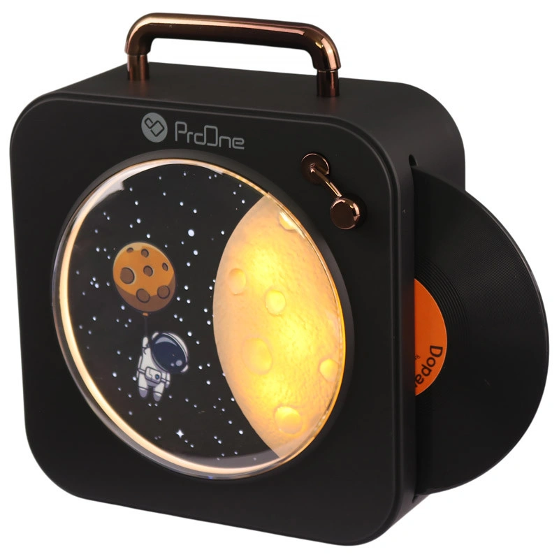 ابعاد:165*185*64 نسخه بلوتوث: نسخه 5.3 برد مستقیم بلوتوث: بیشتر از 10 M توان خروجی: 8 وات 1800mAh: ظرفیت باتری DC 5V/1A: قدرت شارژ روش اتصال: بلوتوث ABS: جنس بدنه ویژگی ها: دارای ظاهر گرامافون -طرح فضانورد-چرخش گراموفون هنگام پخش موسیقی همراه با روشن شدن لایت طرح فضانورد اقلام همراه: کابل شارژ تایپ سی