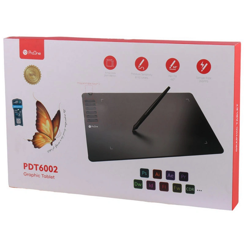 این روزهای با توجه به دورههای آموزشی آنلاین، قلمهای نوری برای درک بهتر آموزش، ابزار بسیار مناسبی هستند. این ابزار برای آن دسته از افرادی که میخواهند طراحیهای گرافیکی انجام دهند هم بسیار کاربردی است. قلم نوری پرووان PDT6002 هم یکی از این محصولات باکیفیت است که میتواند یکی از بهترین انتخابهای ممکن برای شما باشد. این قلم بههمراه صفحه لمسی در نظر گرفته شده، کاربرد بسیار بالایی را با خود بههمراه دارد. صفحهلمسی با ابعاد 6×10 اینچ که با ابعاد به نسبت بزرگ خود، امکان کاربرد آسان و لذت بخش را فراهم کرده است. قلم نوری در نظر گرفته شده هم متریال مناسب و قابل قبولی دارد و روی این قلم، شاهد قرارگیری دو دکمه فیزیکی هستیم. بر روی صفحهلمسی هم حضور 12 کلید میانبر فیزیکی در کنار 10 کلید میانبر لمسی، کمک بسیار زیادی در هرچه کاربردی شدن این محصول کرده است. وزن مناسب 652 گرمی این قلم نوری در کنار صفحهلمسی سبب شده تا مشکلی در راستای جابهجایی با خود به همراه نداشته باشد.
