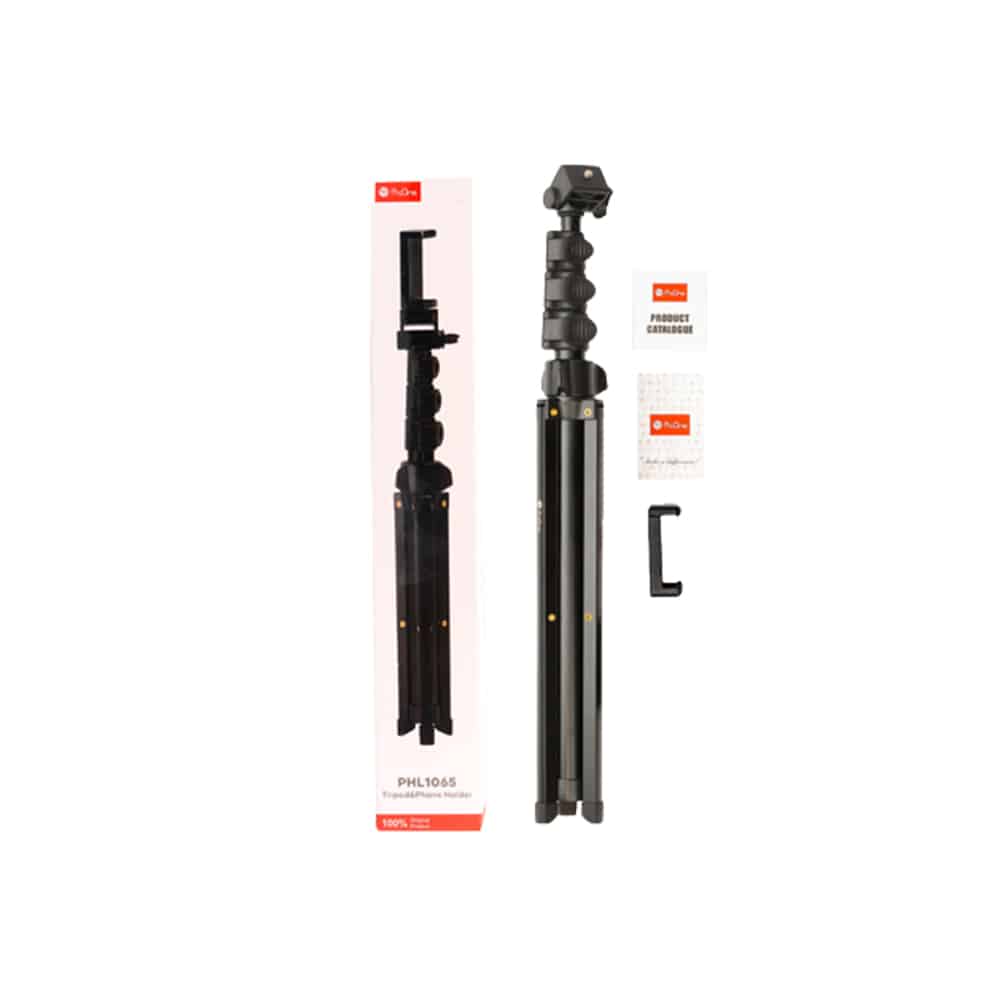 سه پایه موبایل و دوربین مدل PHL 1065یکی از محصولات شرکت «Proone» است. این محصول دارای کالایی با کیفیت بالا است که میتوان برای تولید محتوا ویدئویی، عکاسی و تصویربرداری از آن استفاده کرد. سه پایه پرووان دارای پایههای قابل انعطاف همراه با زیره پلاستیکی شیاردار برای جلوگیری از لیز خوردن روی سطوح مسطح قرار گرفته است. این ابزار جانبی دارای یک هولدر نگهدارنده قابل تنظیم برای موبایل و دوربینهایی با وزن کمتر از 2 کیلوگرم است. جنس قسمت بالایی این محصول از پلاستیک ABS و پایههای آن از جنس آلومینیوم میباشد. یکی از قابلیتهای این سه پایه چرخش به صورت 360 درجه است که کار با این محصول را لذت بخشتر کرده است. طول این محصول در حالت جمع شده 51 سانتیمتر، حداقل ارتفاع 60 سانتیمتر و حداکثر ارتفاع 169 سانتی متر میباشد.