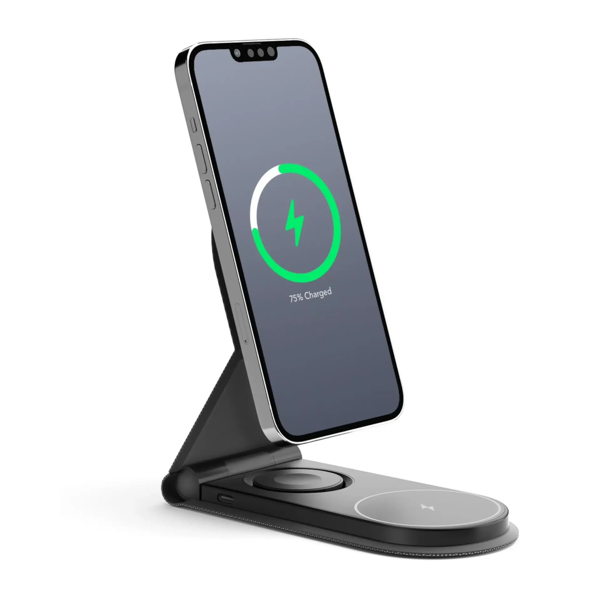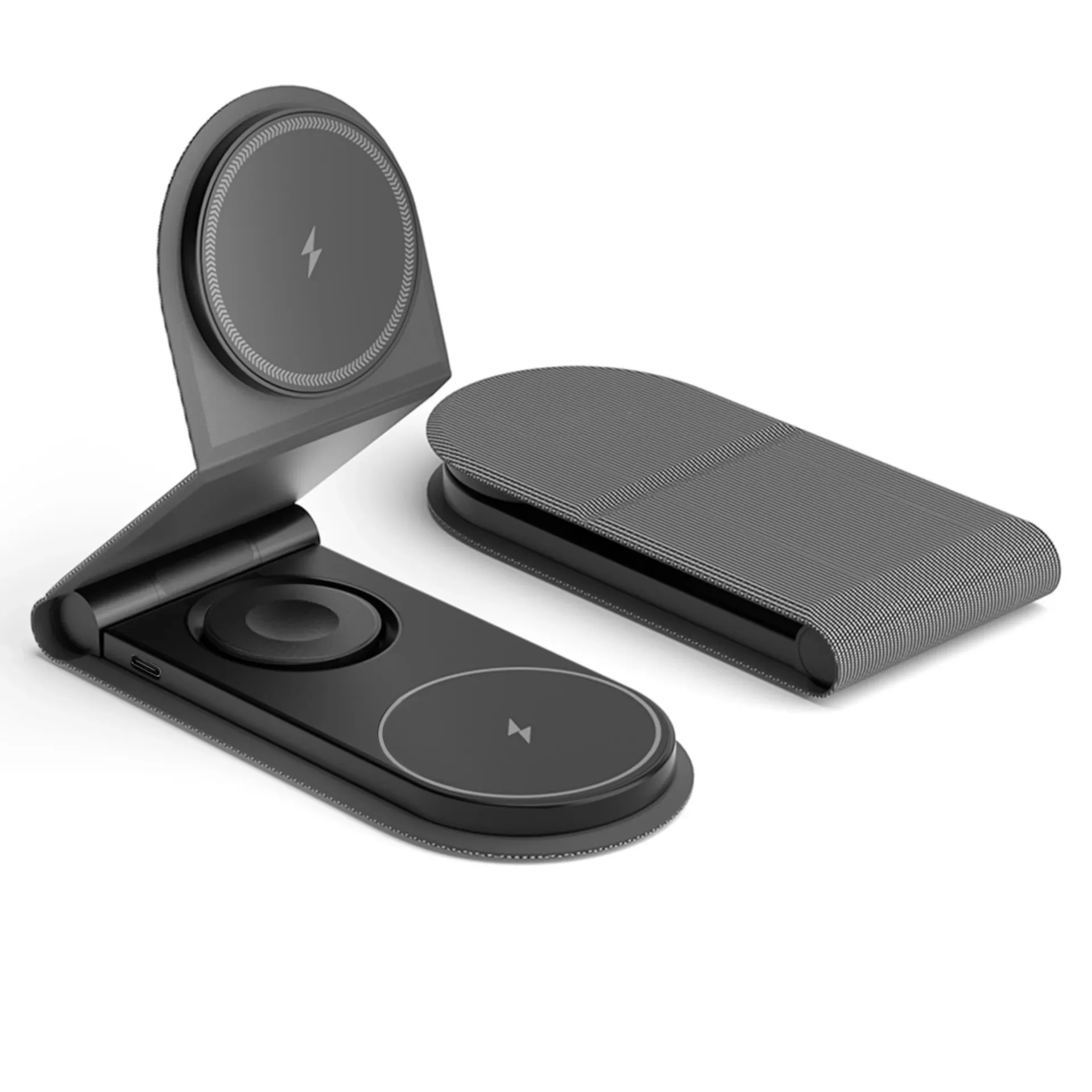 ایستگاه شارژ بیسیم ProOne مدل PWL825، یک راهکار ۳ در ۱ برای کاربران دستگاههای اپل است که امکان شارژ همزمان iPhone، AirPods و Apple Watch را در یک دستگاه واحد فراهم میکند. این شارژر با توان حداکثر ۱۵ وات برای iPhone، ۵ وات برای AirPods و ۲.۵ وات برای Apple Watch، پاسخگوی نیاز شما به شارژ سریع و همزمان خواهد بود، بهویژه زمانی که در حال حرکت یا مشغول کارهای روزانهتان هستید. بدنهی این محصول از ترکیب مقاوم PC و ABS ساخته شده و تنها ۱۵۰ گرم وزن دارد؛ همچنین طراحی تاشوی آن باعث میشود تا بهراحتی در کیف یا کوله قرار گیرد و در سفر یا محل کار، فضای بسیار کمی اشغال کند. رنگ مشکی کلاسیک آن نیز با هر نوع دکور و ست لوازم دیجیتال هماهنگ است. این ایستگاه شارژ با تمامی دستگاههایی که از شارژ بیسیم پشتیبانی میکنند، سازگار است؛ از جمله انواع مدلهای iPhone، AirPods و Apple Watch. همچنین کابل Type-C به Type-C و دفترچه راهنمای محصول درون جعبه قرار دارند تا فرآیند استفاده برای شما سادهتر شود. شارژر بیسیم PWL825 مطابق با استانداردهای بینالمللی CE، FCC و RoHS طراحی شده و اطمینان میدهد که محصولی ایمن، سازگار با محیطزیست و عاری از مواد مضر در اختیار دارید. با این شارژر، هم نظم بیشتری به فضای کاری یا خانهتان میدهید و هم تجربهای سریع، ایمن و مدرن از شارژ چند دستگاهی را خواهید داشت.