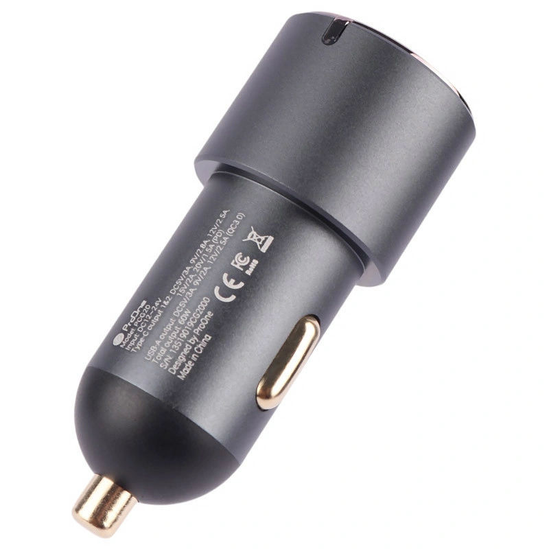 وزن: 29.7 G ابعاد: میلی M 26*26*62 جنس بدنه: Aluminum alloy +PC تعداد درگاه خروجی: 3 عدد QC USB+ 2*PD ولتاژ و جریان خروجی Type-C: DC 5V/3A, 9V/2.8A, 12V/2.5A, 15V/2A, 20V/1.5A (30W) ولتاژ و جریان خروجی USB-A: DC 5V/3A, 9V/2A, 12V/2.5A (QC3.0) توان خروجی: 60 وات ولتاژ ورودی: 12 تا 24 ولت