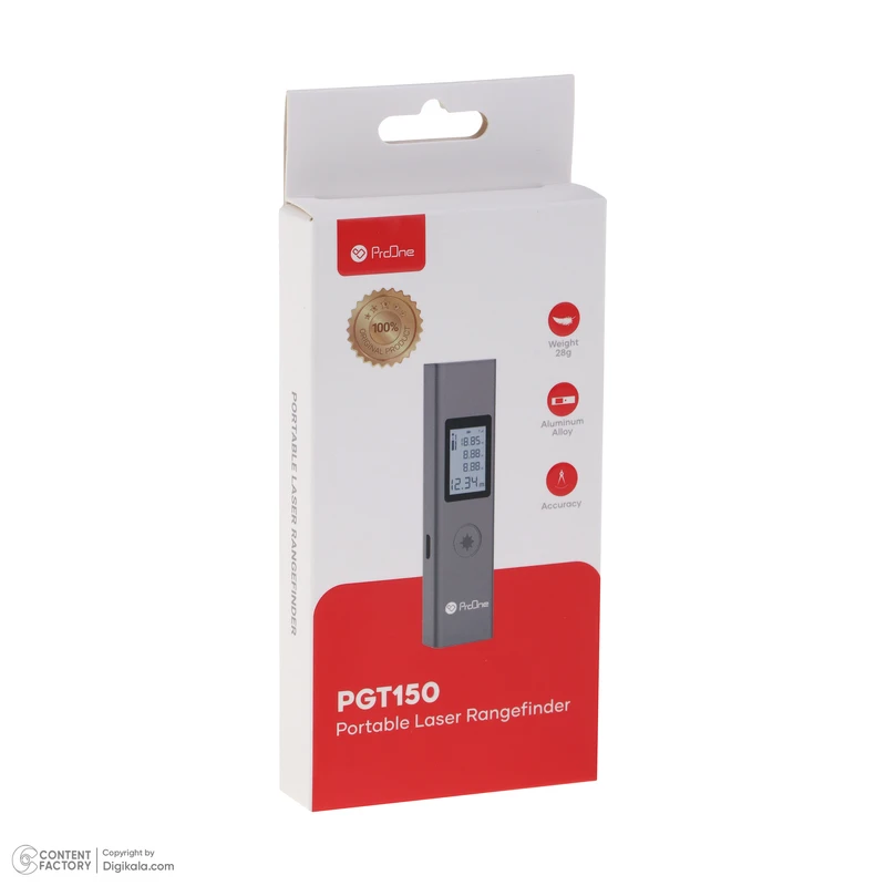 متر لیزری پرووان PGT150 laser rangefinder وزن: 28گرم ابعاد: 86*22*11 میلی متر جنس: آلیاژ آلومینیوم ظرفیت باتری: 180mAh نوع باتری: باتری لیتیومی روش شارژ: 5V Max0.2A تعداد دفعات اندازه گیری(در حالت شارژ کامل): 300 مرتبه