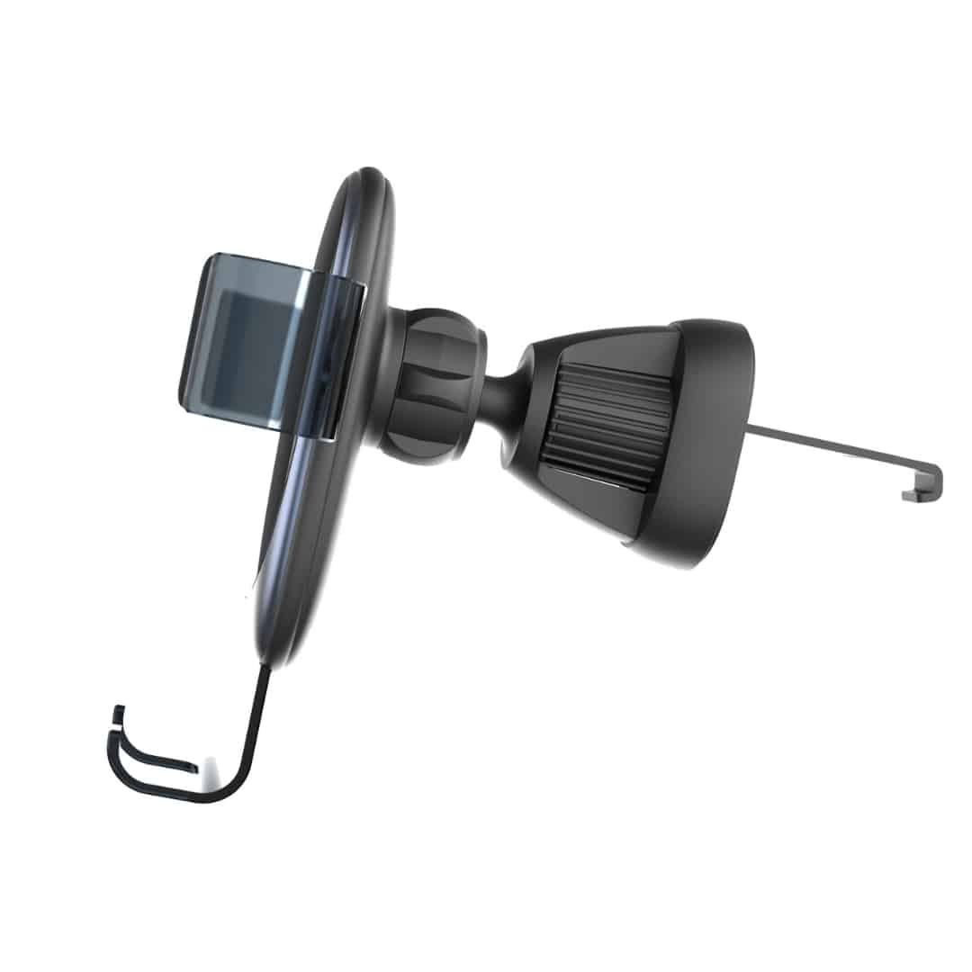 مناسب برای نگهداشتن گوشی روی دریچه کولر خودرو، با طراحی گرانشی برای باز و بستهشدن خودکار بازوها، بدون مزاحمت برای دید راننده یا مسیر جریان هوا، سبک، جمعوجور و مناسب برای استفاده روزمره در خودرو