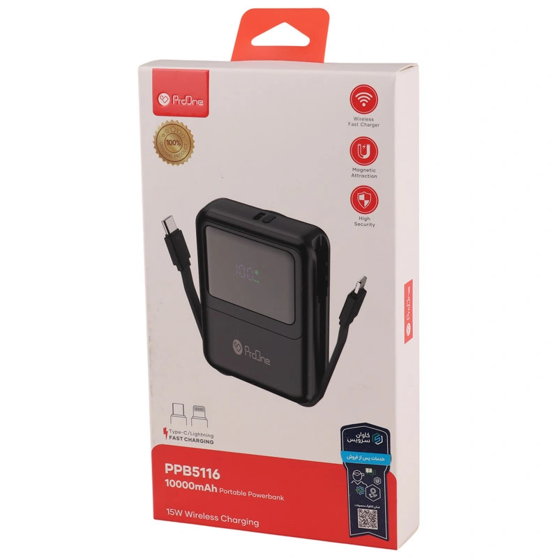 پاوربانک پرووان مدل PPB5116 با ظرفیت 10,000 میلیآمپر ساعت و قابلیت شارژ وایرلس یکی از محصولات کاربردی و محبوب این برند است که به دلیل ارائهی شارژ بیسیم و همچنین امکان شارژ همزمان چند دستگاه، گزینهای مناسب برای کاربران امروزی محسوب میشود. باظرفیت ده هزار میلیآمپر ساعت است که میتواند برای شارژ کامل چندین بار دستگاههای هوشمند مناسب است مجهز به تکنولوژی شارژ وایرلس با توان خروجی 15 وات که امکان شارژ آسان دستگاههای سازگار با شارژ بیسیم را بدون نیاز به کابل فراهم میکند. دارای یک درگاه ورودی تایپ سی با ولتاژ 5 ولت و شدت جریان 3 آمپر است دارای کابل شارژ متصل مدل تایپ سی با توان 18 وات است دارای کابل شارژ متصل مدل لایتنینگ است قابلیت شارژ وایرلس FAST CHARGE پشتیبانی می کند از فناوری شارژ سریع پشتیبانی می کند