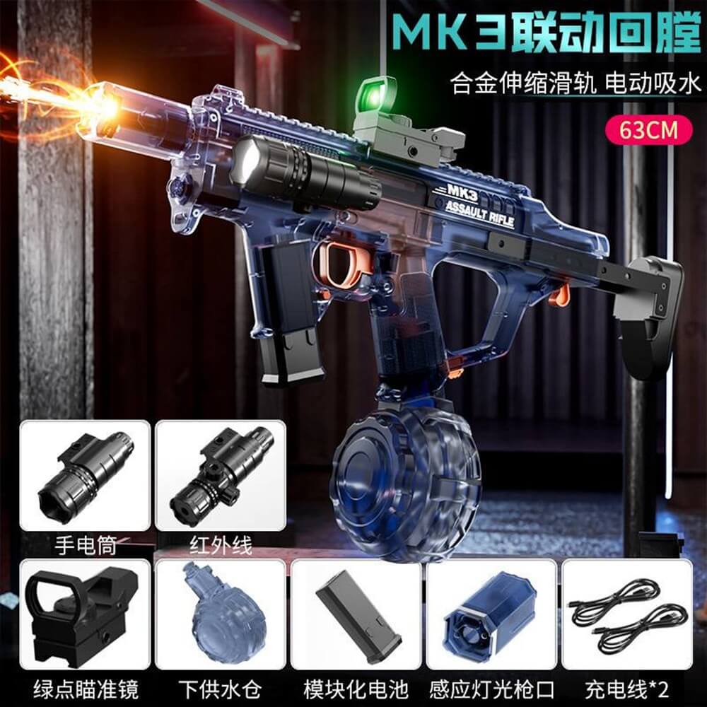 این تفنگ برای کودکان و بزرگسالان قابل استفاده است و گزینهای عالی برای تفریحات خانوادگی، ساحل، پارک یا حیاط محسوب میشود. طراحی جذاب، رنگهای اسپرت و عملکرد دقیق، مدل MK3 را به انتخابی ایدهآل برای کسانی تبدیل کرده که به دنبال کیفیت، قدرت و لذت واقعی در بازیهای آبی هستند.
